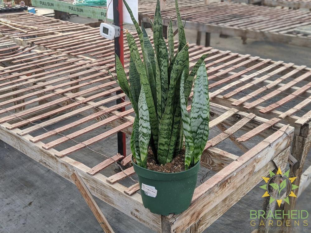 Snake Plant is a variety of Sansevieria. Commonly known as "Snake plant", many of the other varieties are mistaken for the same plant. All Snake plants are Sansevieria, but not all Sansevieria are Snake Plants. Snake plants are a semi-succulent. Meaning they hold their moisture to endure drought and heat, but they do not like too much direct sunlight, unless slowly acclimated to do so. Snake plants have 2 - 3 different shades of green with horizontal bands across the leaf.