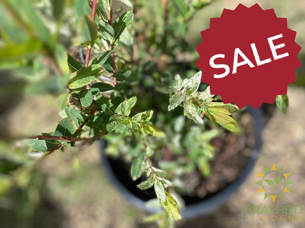 Variegated cream-white and green foliage dappled with pink is retained through the growing season on smooth, red-pink branches. Improved Nishiki Willow. Resistant to leaf scorch. Use for mass, accent, hedge or screen plant. Prefers full sun and fertile, moist soil.