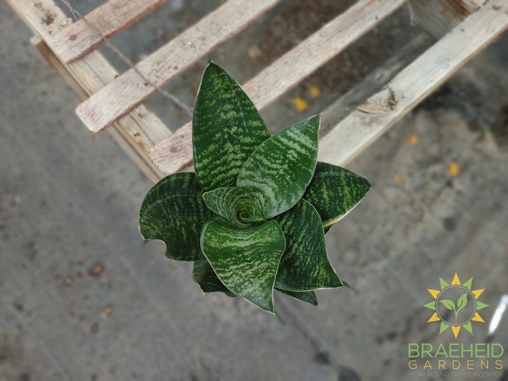 Low, birdsnest like shape, low light and low water. Great neglect plant.