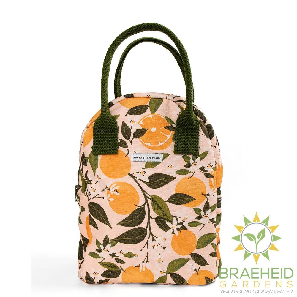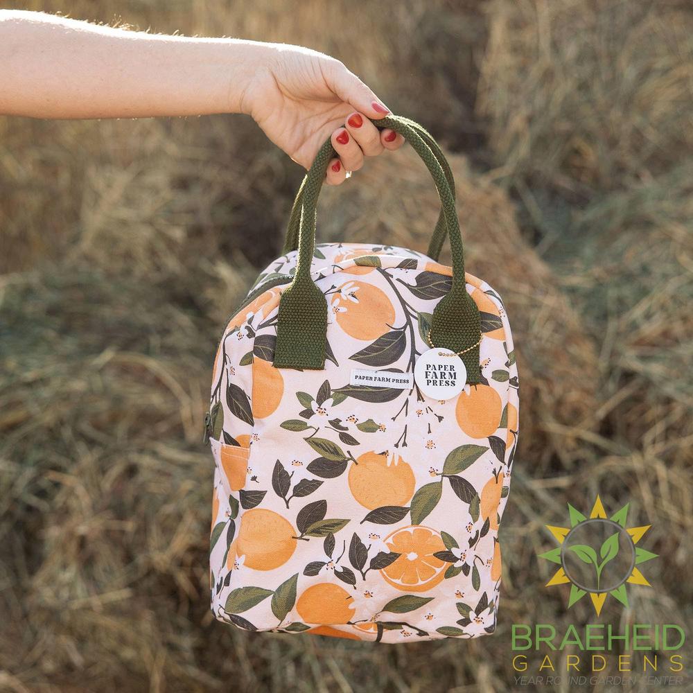 Brighten your lunchtime routine with our Orange Orchard Lunch Box! Featuring a delightful orange motif, this charming lunch box combines fun and functionality, perfect for school, work, picnics, or outings. Crafted from durable, easy-to-clean materials, it keeps your meals fresh and secure. The spacious interior features a coordinating gingham design and offers plenty of room for sandwiches, snacks, and beverages, while the insulated lining maintain the perfect temperature. With a sturdy handle and lightweight design, itβs easy to carry wherever you go. This adorable lunch box makes a thoughtful gift for orange lovers and anyone who enjoys a playful touch in their daily routine. Make lunchtime more enjoyable with the Orange Orchard Lunch Box! Features: Wipeable interior lining, interior pocket, YKK zipper Material: Exterior - Printed cotton canvas, Interior - Nylon lining, Handle - Natural heavy cotton webbing Size: 11" x 8" x 5"; 7" handle