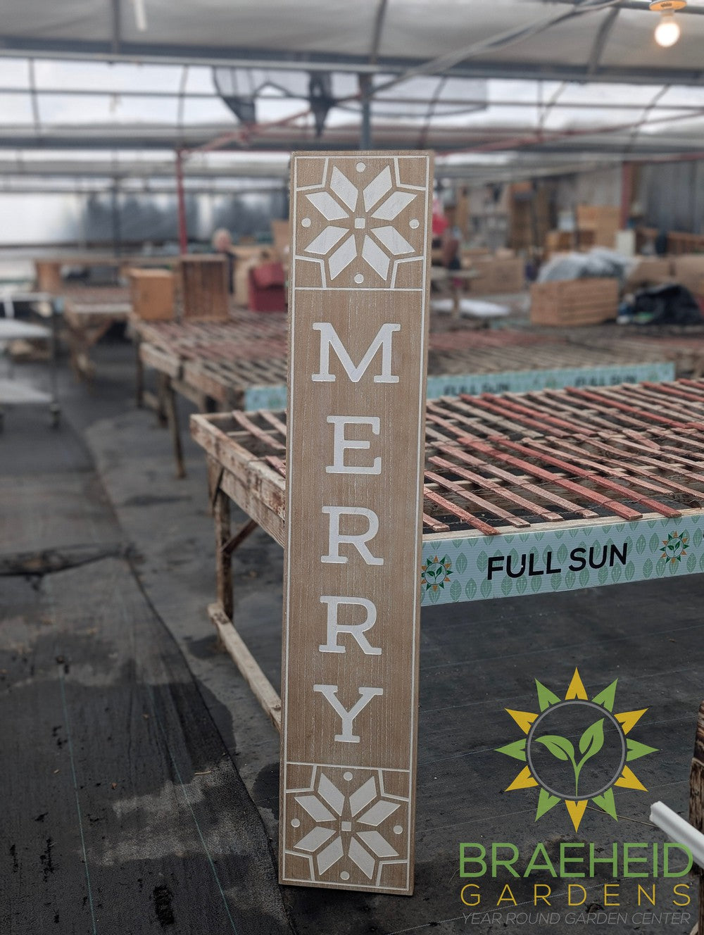 Oversized Merry with Snowflakes Carved Vertical Wall Decor