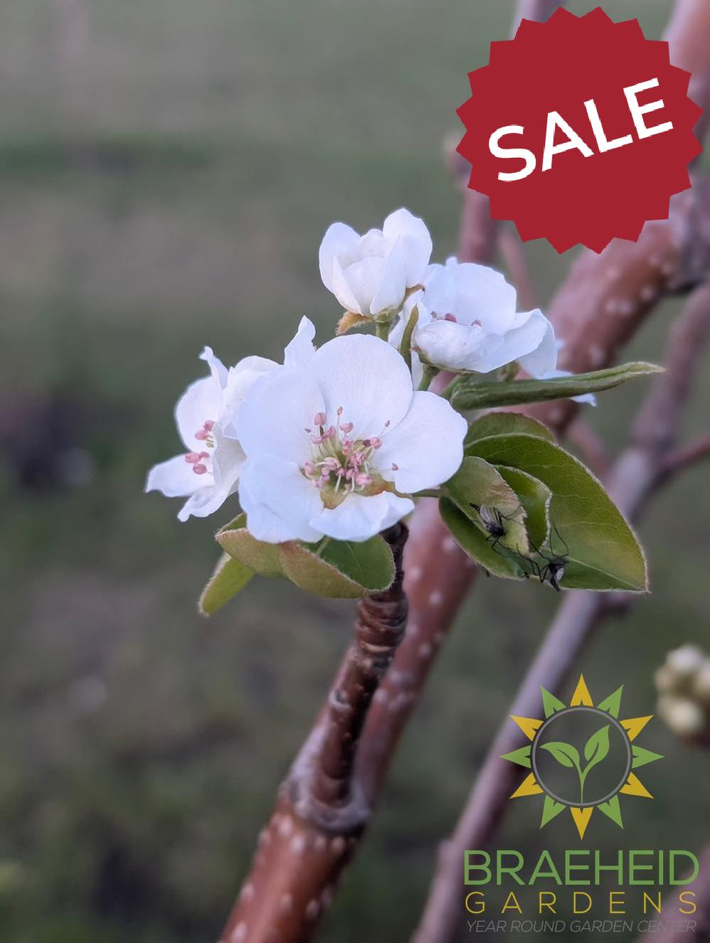 This pear has a columnar, upright growth habit. Larger sized yellow fruit for the hardy pears. Great for eating fresh and used in preserves. Cross-pollinate with another pear for consistent yields. Prefers a moist, well-drained soil.
