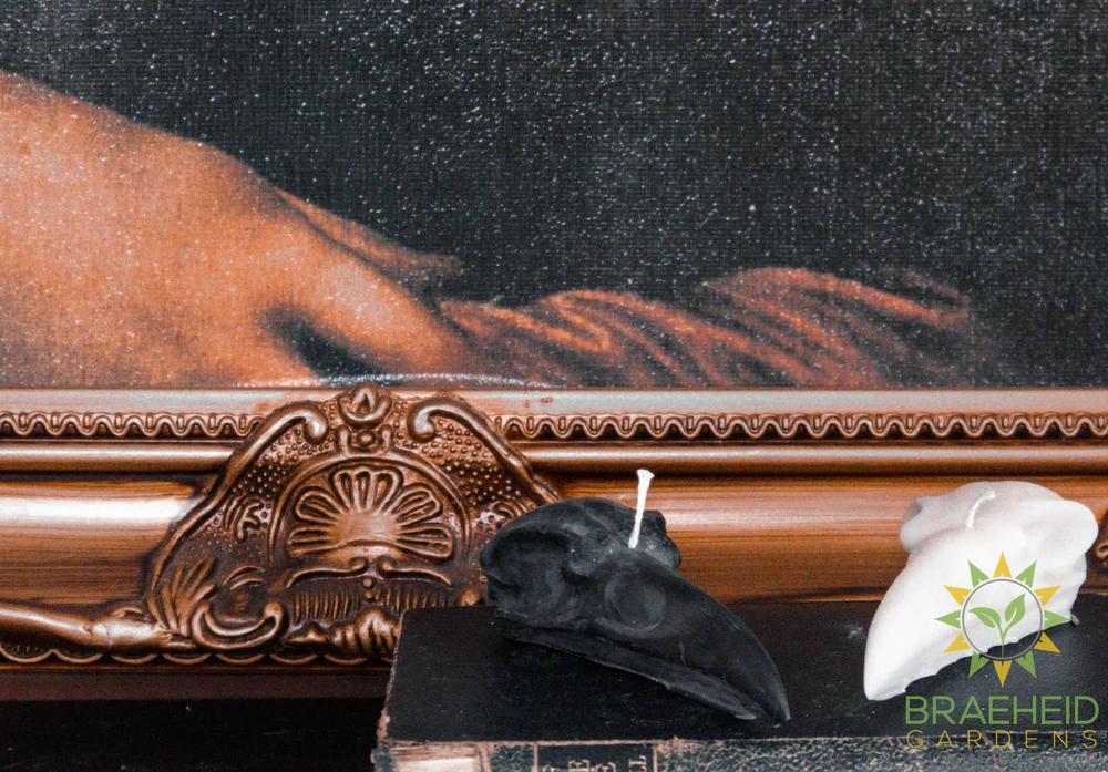 Quaint, intricate, and impactful. Anchor this raven skull decorative candle atop any surface for the perfect touch of macabre.