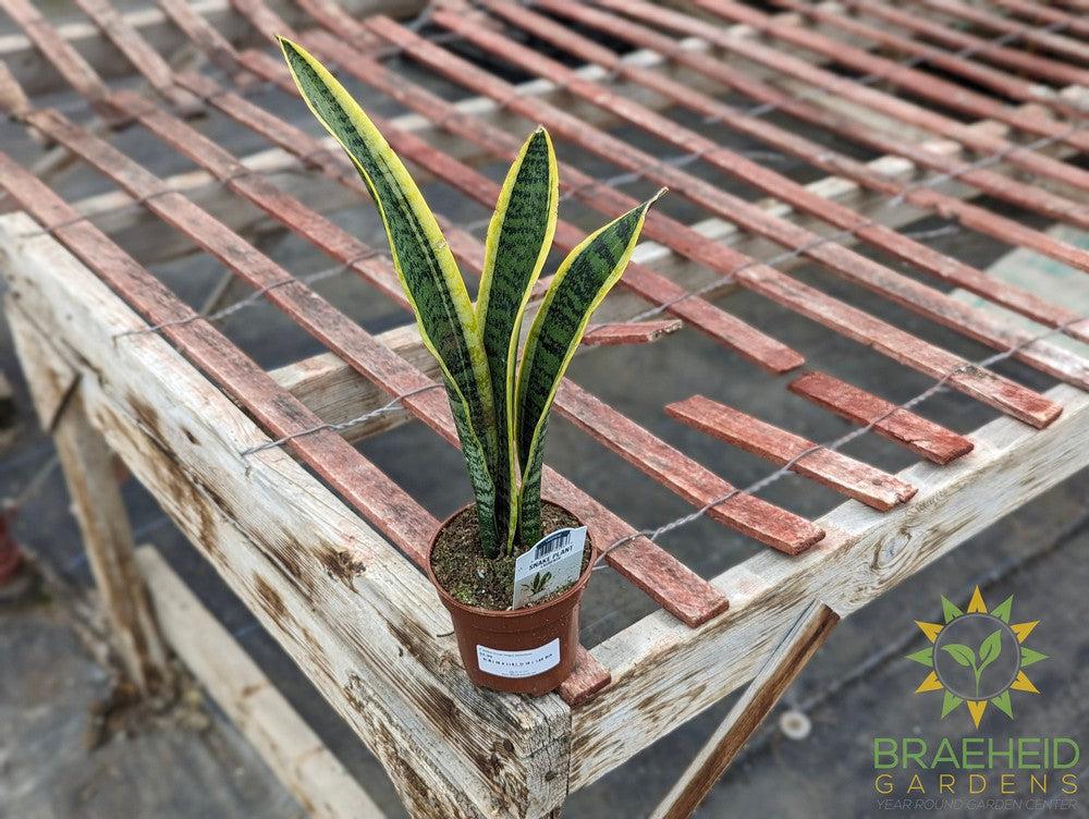 Mother-in-Law Tongue is a variety of Sansevieria. Commonly known as "Snake plant" (Sansevieria Laurentii), many of the other varieties are mistaken for the same plant. All Snake plants are Sansevieria, but not all Sansevieria are Snake Plants. Mother-in-Law Tongue are a semi-succulent. Meaning they hold their moisture to endure drought and heat, but they do not like too much direct sunlight, unless slowly acclimated to do so. Snake plants have 2 - 3 different shades of green with horizontal bands across the leaf with vertical yellow edges.