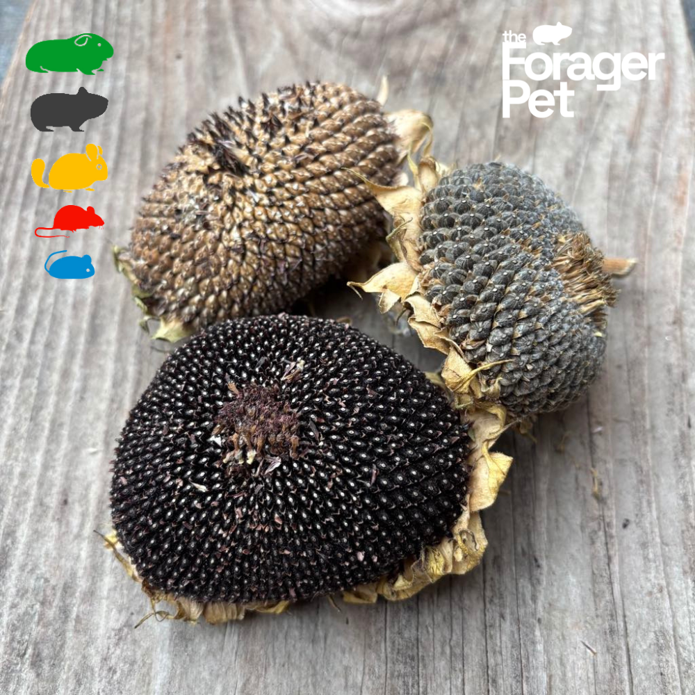 Scrunchy Sunflower Heads are the ultimate natural snack-and-toy combo for small pets. Each dried head is left whole, so your little forager can dig, pull, nibble, and scrunch their way to the tasty seeds inside. Every bag is a lucky dip of organic sunflower heads in different shapes and sizes—perfect for keeping things fresh and fun with every order.