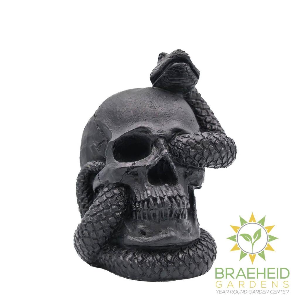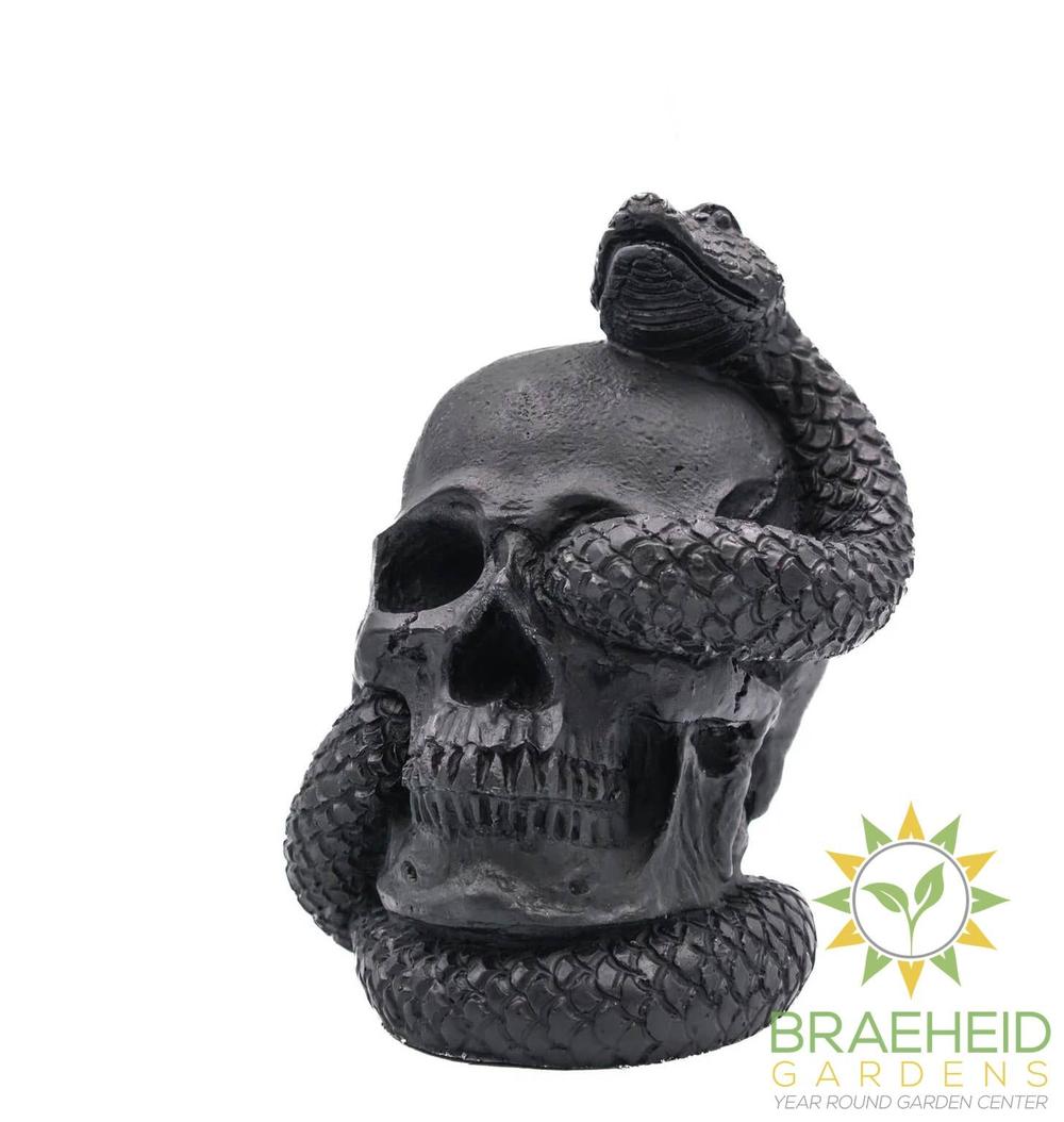 Add this intricately weaving snake and skull candle to any space for a touch of dark elegance. Available in black.