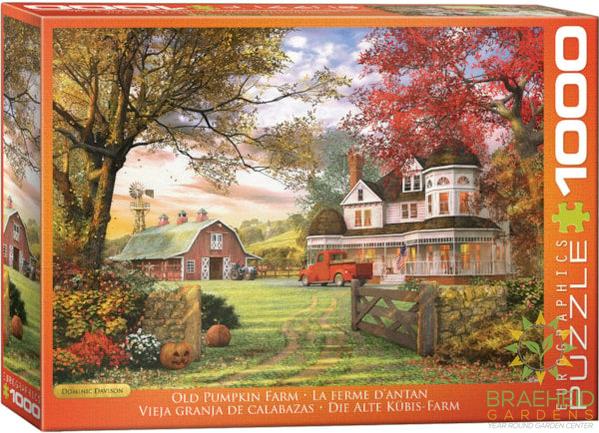 This 1000-piece puzzle, titled "Old Pumpkin Farm" from Eurographics, offers a delightful and immersive puzzling experience. The stunning artwork by Dominic Davison captures the essence of a peaceful autumn day on a classic farmstead.
