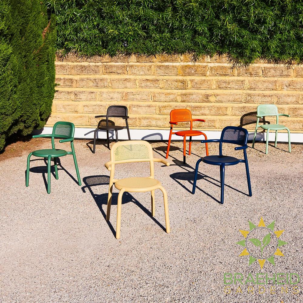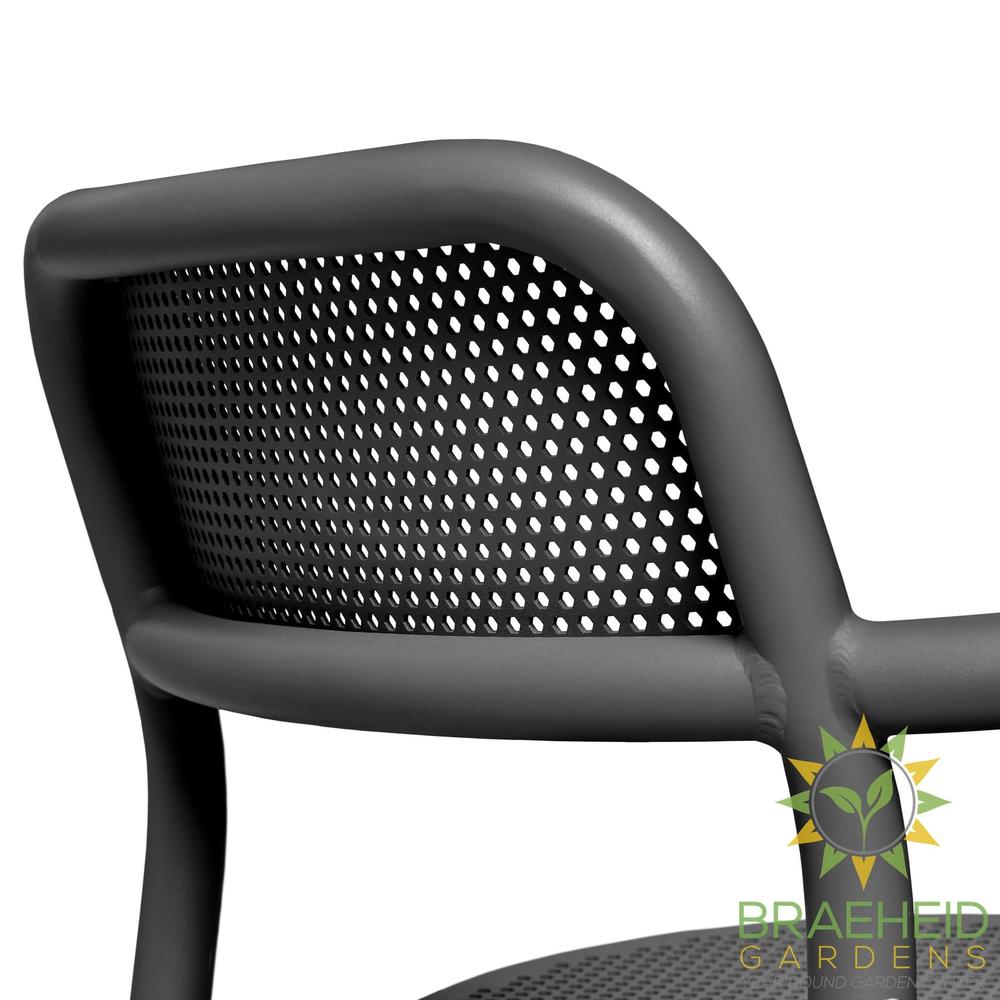 Toní Armchair is a robust garden chair with a nod to the classic bistro chair. Made of high-quality aluminum and provided with the highest standard outdoor coating, the Toní Armchair is stainless, colorfast, and resistant to all weather types.