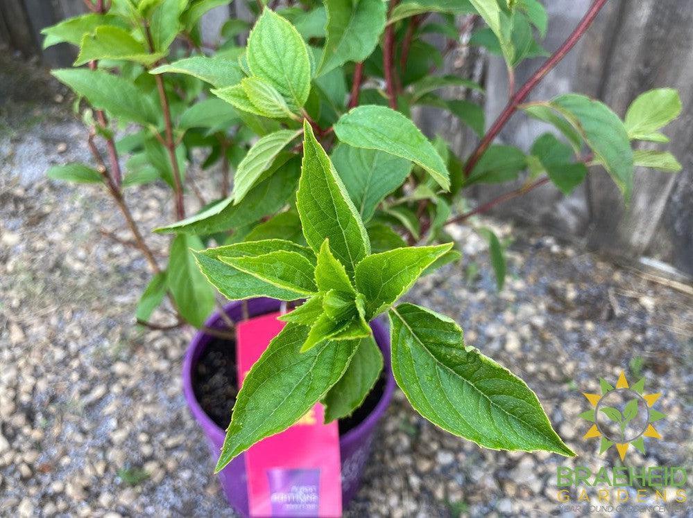 Very large cone-shaped blooms start creamy white, mature to soft pink then finally strawberry-red; all on a strong red stem. Red bloom colour can last up to a month. Blooms start in early summer and last through early fall. Prefers a moist, well-drained soil.